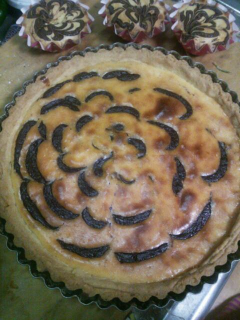5、焼き上がった生地に【3】のフィディングを流し込みます。