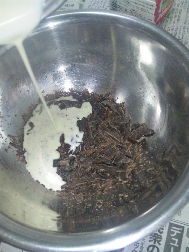 ボールにチョコを小さく刻んだりしていれておく。
