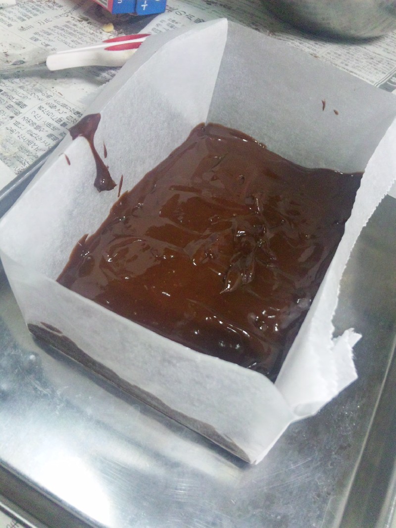 型に(2)を流し込んでゴムベラなどで表面を平らにします。