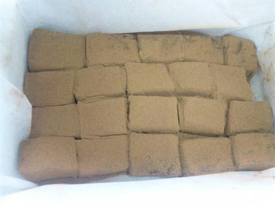 切れたら、ココアを茶こしでふりかけ、全体にまぶせたら完成。見た目が悪いのはご愛敬(;^ω^)