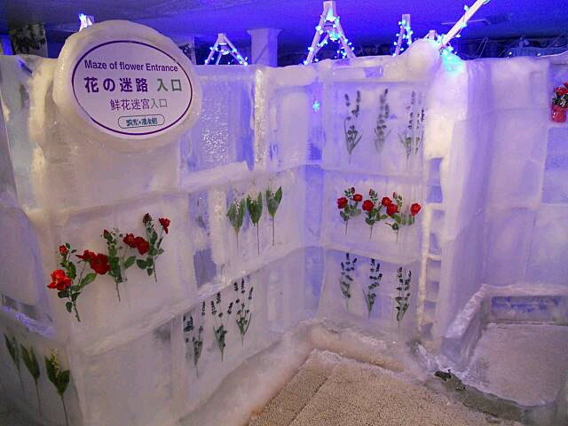 入ってまず、ラベンダーの壁があるわけですよ、氷漬けにされたラベンダーが。