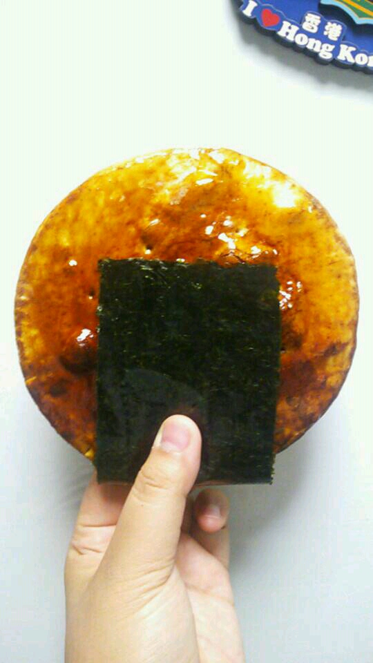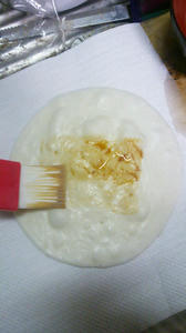 これをオーブントースターで3分焼くらしい。が、おせんべい本来の作り方は焼いて塗って焼いて塗ってを何回かやっていたような気がするので3分焼いて醤油を塗って3分焼いてみることにします。