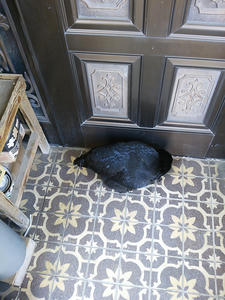 帰ってきたら玄関先に丸まってて入れなくてかわいい