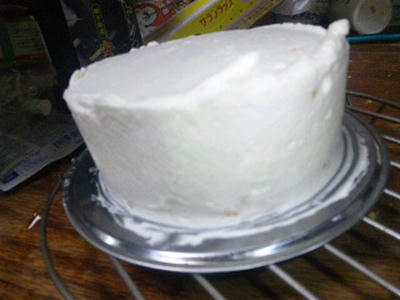 4、側面にベタベタとクリームをつける。