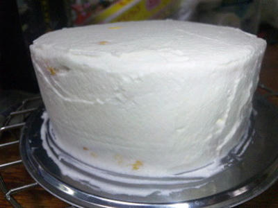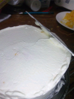 6表面の横っちょから飛び出したクリームはナイフで上手く表面に持っていく。